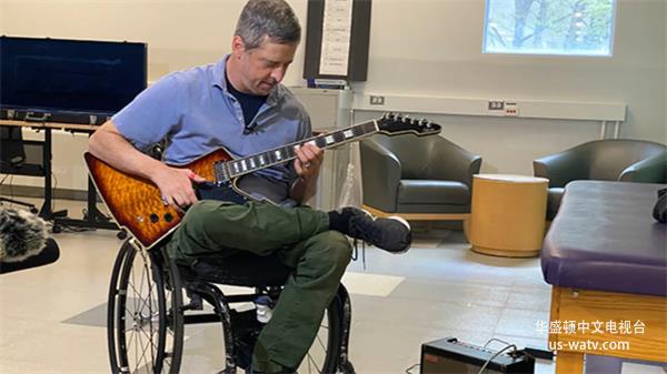 一名坐在轮椅上的男子正在弹吉他(照片:华盛顿大学医学院提供)