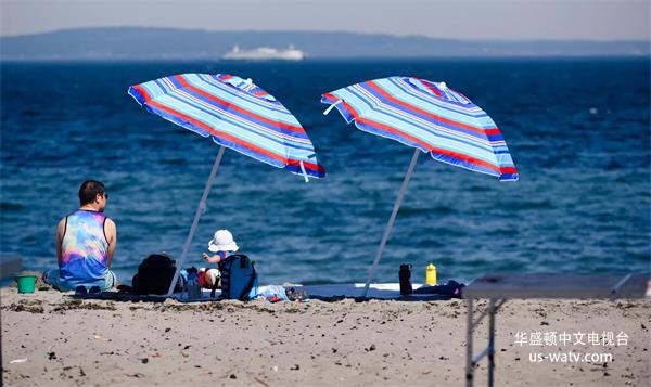 西雅图热浪期间,游客在 Alki 海滩。照片:Chona Kasinger/Bloomberg via Getty Images