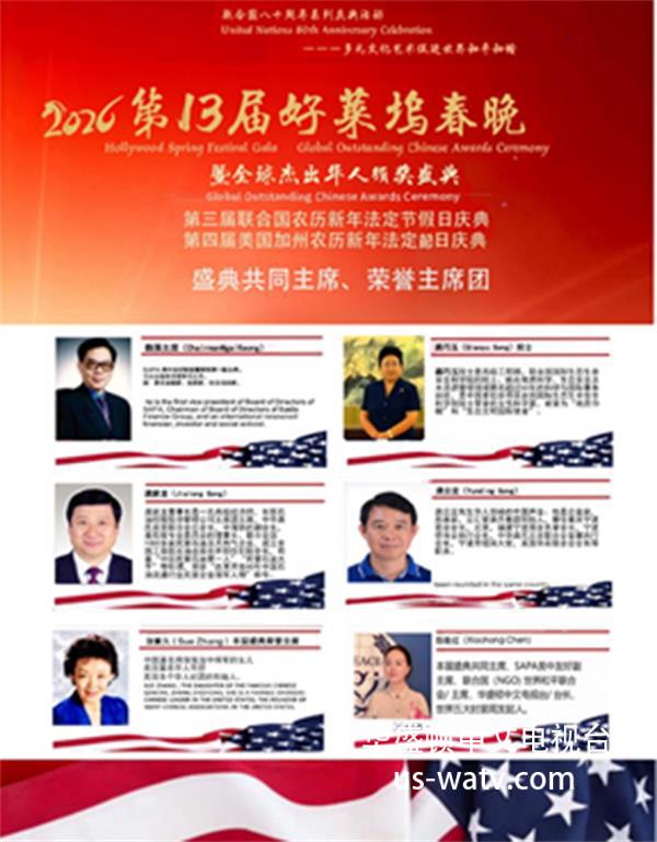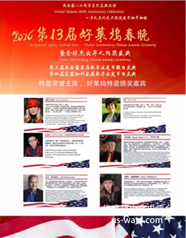 2026年1月17日,第十三届好莱坞春晚暨全球杰出华人颁奖典礼在好莱坞星光大道著名的 Montalban Theatre 隆重举行。来自全球及美国各地的1000多位嘉宾与300多位艺术家齐聚好莱坞艺术殿堂,共襄一场融合文化、艺术与荣耀的年度盛典。