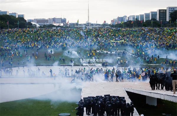 数千示威者强行闯入位于首都巴西利亚的巴西国会、联邦最高法院和总统府等国家权力机构所在地,并与军警发生冲突。参议院一楼的所有窗户被摧毁,一些抗议者已经进入二楼。