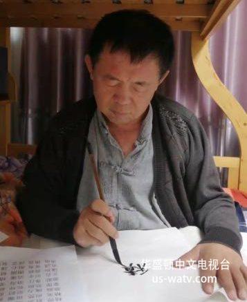 这是在他发表了一百多套巨著,九千多万字之后在书写世界疫情大纪实四本书后,脑部四次中风导致脑部全身瘫痪无法再写书。在别人的帮扶下,扶着他残废瘫痪的身体,他才能坐着艰难的写出毛笔书法。他再一次把自己对党和人民的无限忠诚通过毛笔书法抒发出来。正像他自己所说的那样“我已经无法写书,自己对这个世界的贡献到此结束了。”但是他顽强的认为,他曾经书写过4亿多字,公开发表的出版物为一亿多字。他对书法的写作章法布局烂熟于心。所以说他又向自己的徒弟,一个专门从事书法事业的书法家常亚芹,开始学习书法。