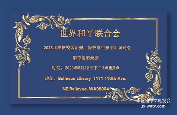 2023年8月13日,由世界和平联合会主办的2023年“维护校园安全,保障学生安全”研讨会在华盛顿州贝尔维尤图书馆举行。其目的:预防和减少枪击事件的发生,寻求校园安全措施。On August 13, 2023, the 2023 “Maintaining Campus Safety, Ensuring Student Safety” seminar hosted by the World Peace Federation was held in the library of Bellevue, Washington State. Its purpose: to prevent and reduce the occurrence of shooting incidents, and to seek campus safety measures.